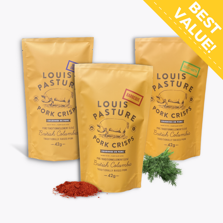 Our Pork Crisps are handmade in small batches here on beautiful Vancouver Island. We use only the highest quality, traditionally raised local pork. Please specify which flavours you would like in your case.